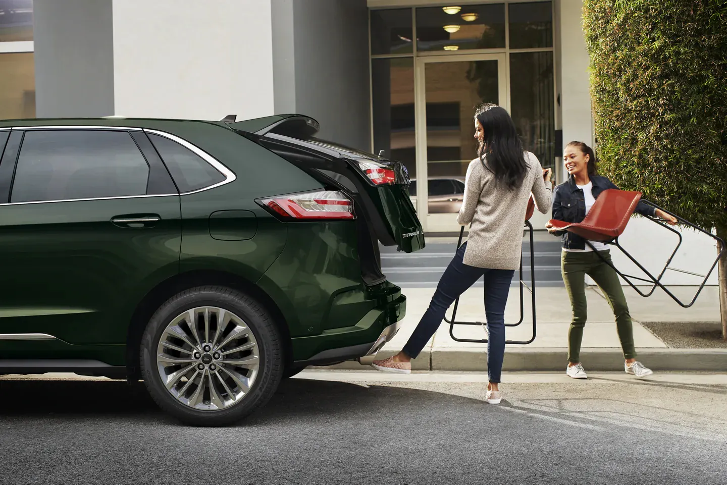 Need to open the rear door but your hands are full? No problem. Simply swipe your foot under the middle of the rear bumper and the liftgate16 will open automatically. The Ford Edge helps make life easier, so you can take a load off.